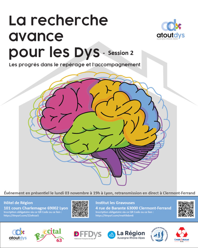 Entrée gratuite et inscription obligatoire sur présentation d’une pièce d’identité le jour de la conférence : Inscription conférence à Lyon : La recherche avance pour les Dys – Session 2 | Framaforms.org